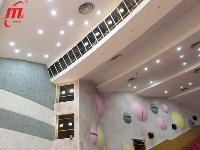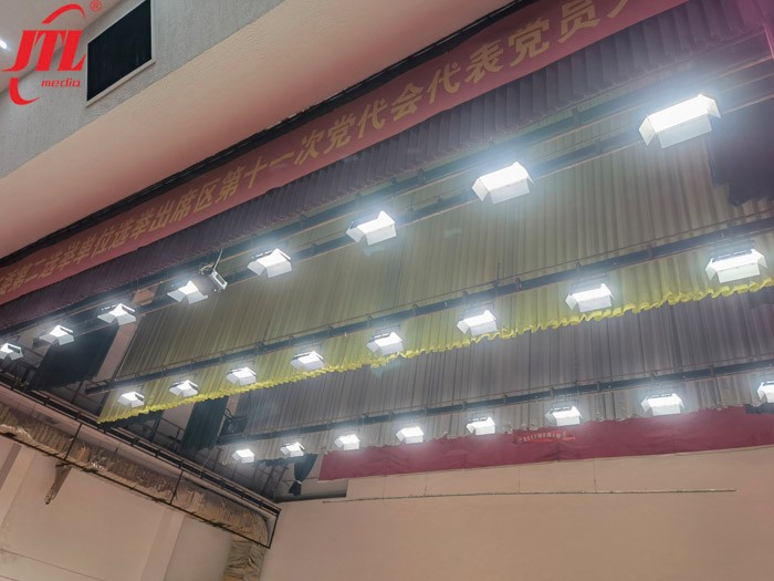 本次項(xiàng)目主要針對金陵石化劇場燈光設(shè)備的改造。由于石化劇場年代已久,照明設(shè)備陳舊,燈光亮度明顯不足,不能滿足日常會議報(bào)告的拍攝要求,因此勁騰燈光工程部選用了靜音型LED三基色柔光燈及200W調(diào)焦成像燈進(jìn)行燈光改造。