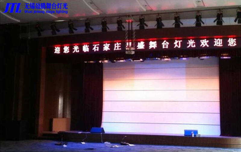 報(bào)告廳用于會議報(bào)告、舞臺演出等活動,勁騰舞臺燈光采用LED COB聚光燈作為面光部分,滿足舞臺照明需求,搭配3*54顆LED全彩帕燈,滿足日常演出活動舞臺氛圍渲染的需求。